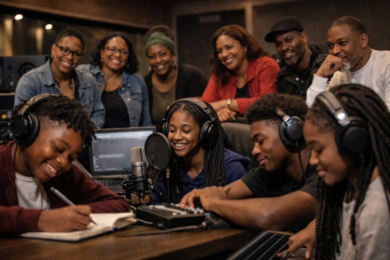 The Youth Audio Collective is a nonprofit program powered by Grow Your World Inc., This particular series was funded by Fulton County, in collaboration with Patchwerk Recording Studios, and supported by Music Business Kids of America’s curriculum. The program served young people ages 13–24, offering hands-on learning in audio engineering, songwriting, music business, production, and creative expression within a professional studio environment.